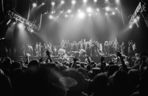 The production was bigger, with colorful graphics flashing on the huge screens around them, but the music remained rooted in